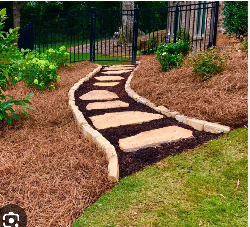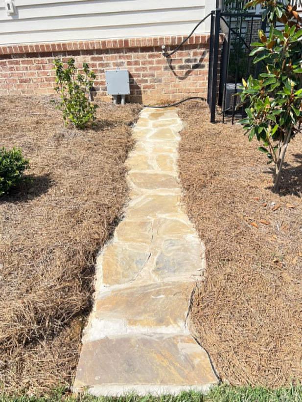 Beautiful hand-laid stone pathways that enhance garden beds, improve walkability, and create a clean, natural landscape design.